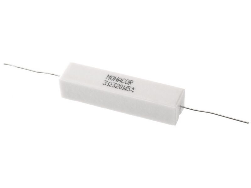 High-power cement resistor, 3.3 Ω, 20 W Resistor for use in crossover networks, especially for PA and top hi-fi applications, also to be connected as load resistors. Manufacturer information: MONACOR INTERNATIONAL GmbH & Co. KGKonsul-Smidt-Str....