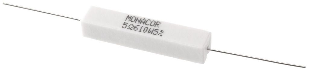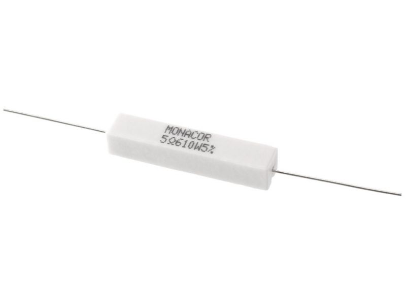 High-power cement resistor, 5.6 Ω, 10 W Resistor for use in crossover networks, especially for PA and top hi-fi applications, also to be connected as load resistors. Manufacturer information: MONACOR INTERNATIONAL GmbH & Co. KGKonsul-Smidt-Str....