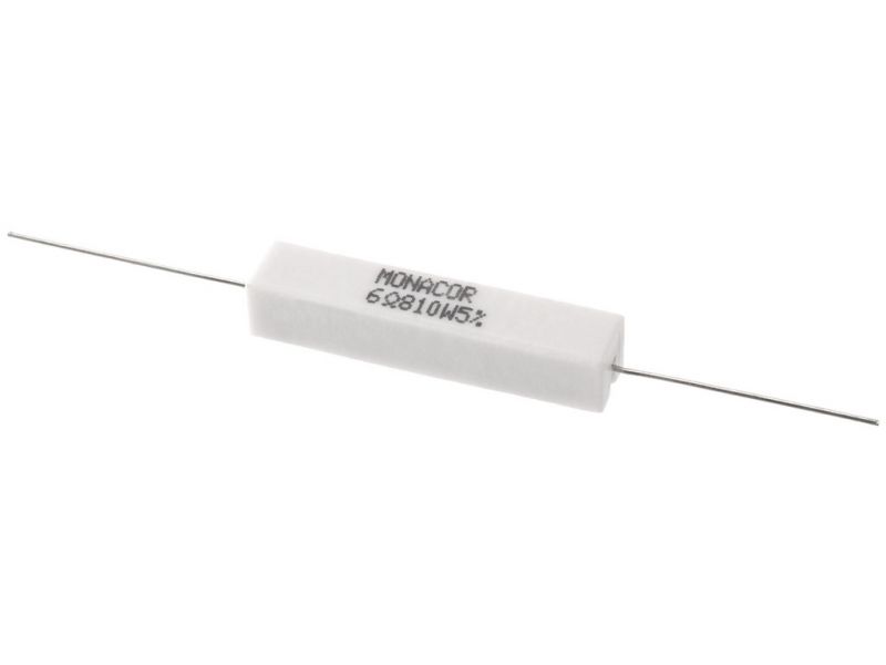 High-power cement resistor, 6.8 Ω, 10 W Resistor for use in crossover networks, especially for PA and top hi-fi applications, also to be connected as load resistors. Manufacturer information: MONACOR INTERNATIONAL GmbH & Co. KGKonsul-Smidt-Str....
