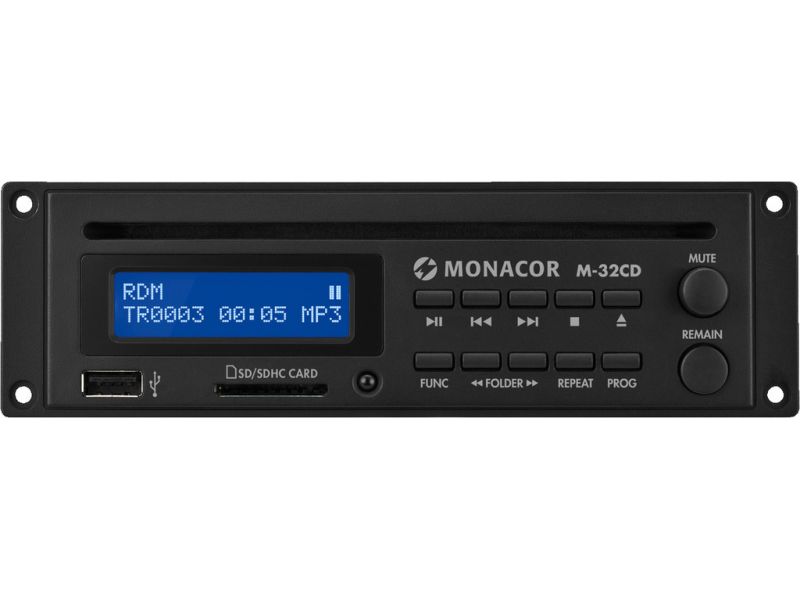 CD player module, with anti-shock system and MP3 reproduction. Slot-in mechanism USB port for external storage media SD/MMC card slot for SD cards up to 32 GB, available at option Random play, repeat function Single play function Track programming...