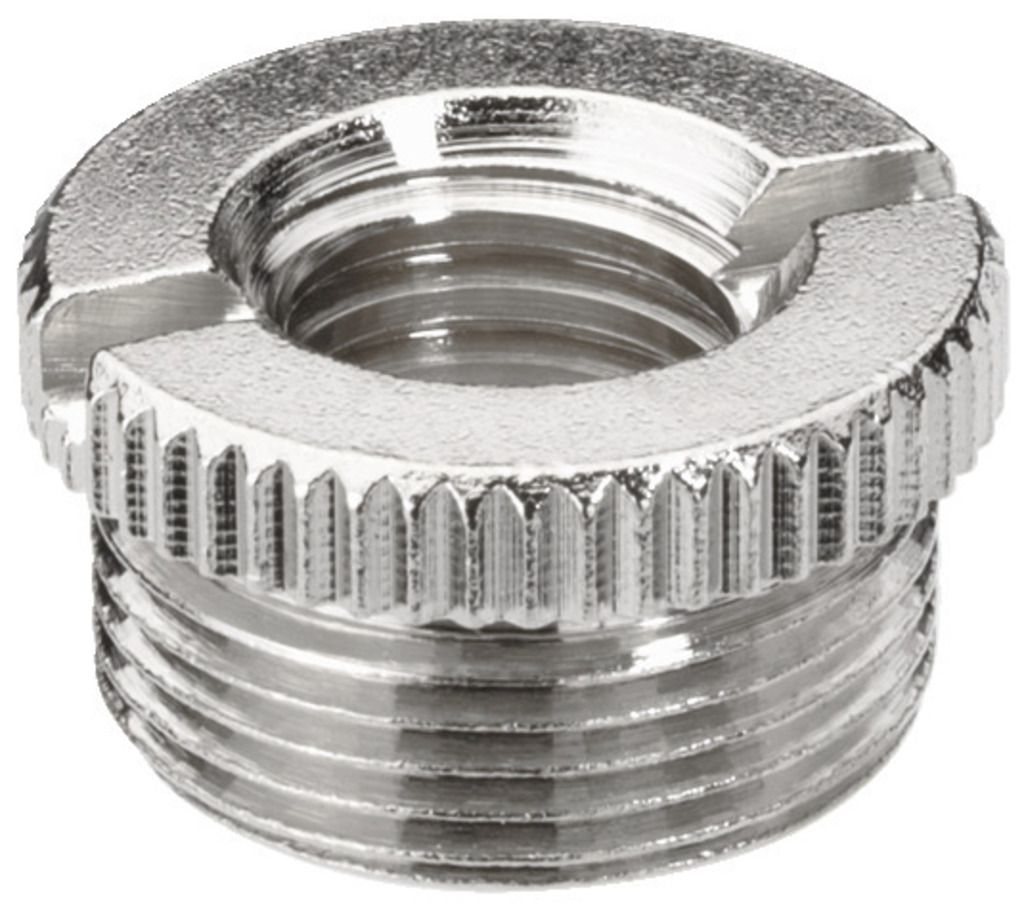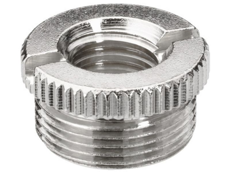 Thread reducer For reducing thread from 16 mm (⅝") to 9 mm (⅜") Chromium-plated brass For microphone holders Manufacturer information: MONACOR INTERNATIONAL GmbH & Co. KGKonsul-Smidt-Str. 6828217 BremenGermanyinfo@monacor.com