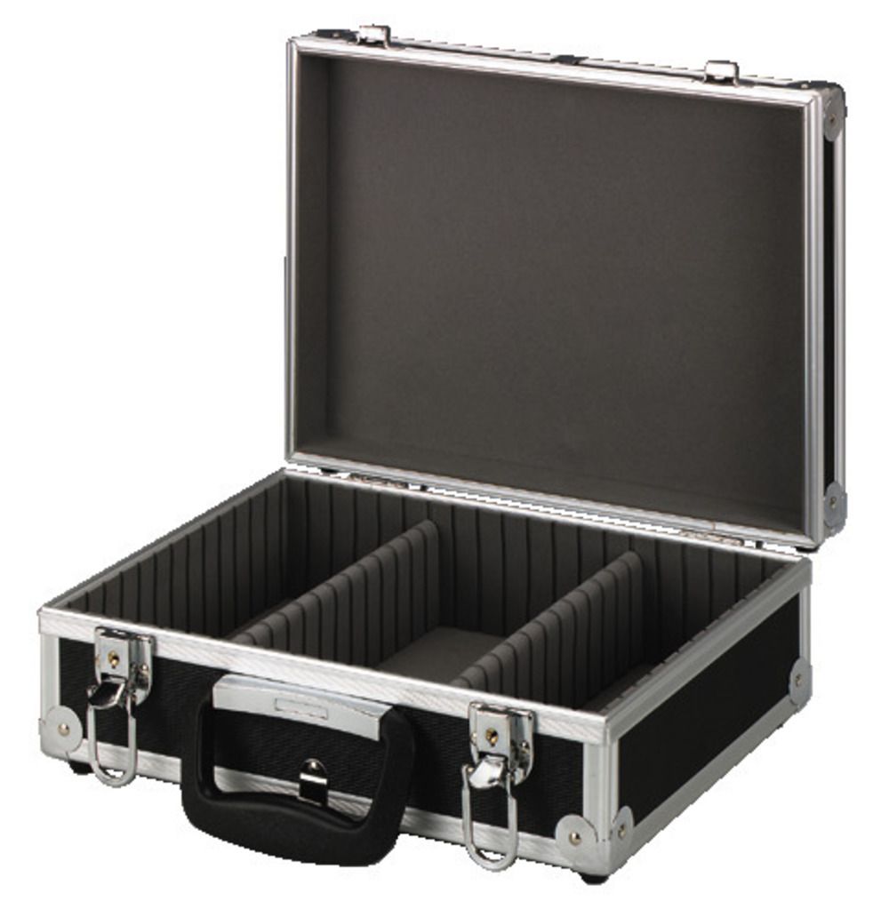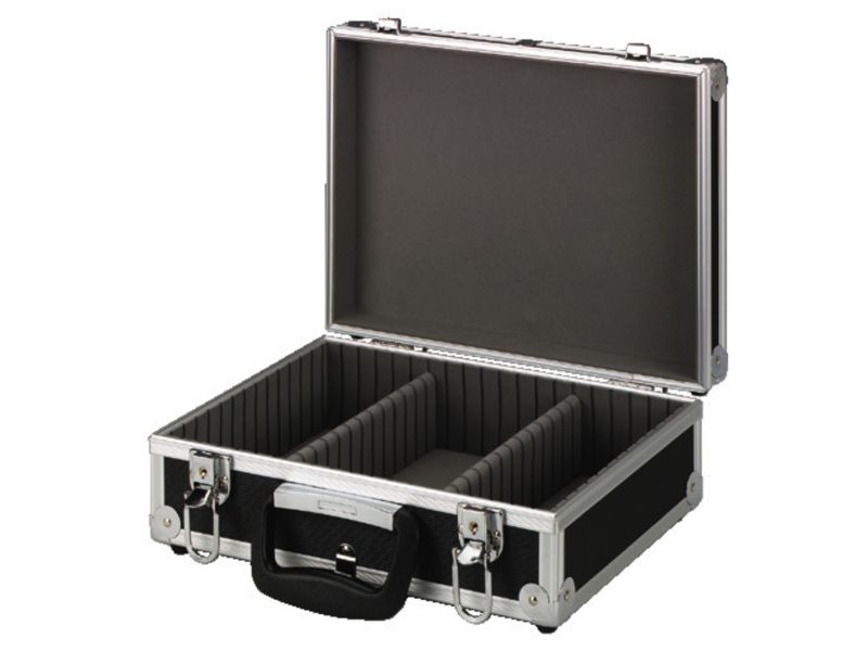 MiniDisc case Foam-padded interior 3 compartments for MDs; for general applications, both partitions can be arranged as required Aluminium profile frame Lockable, supplied with 2 keys Robust carrying handle Manufacturer information: MONACOR...