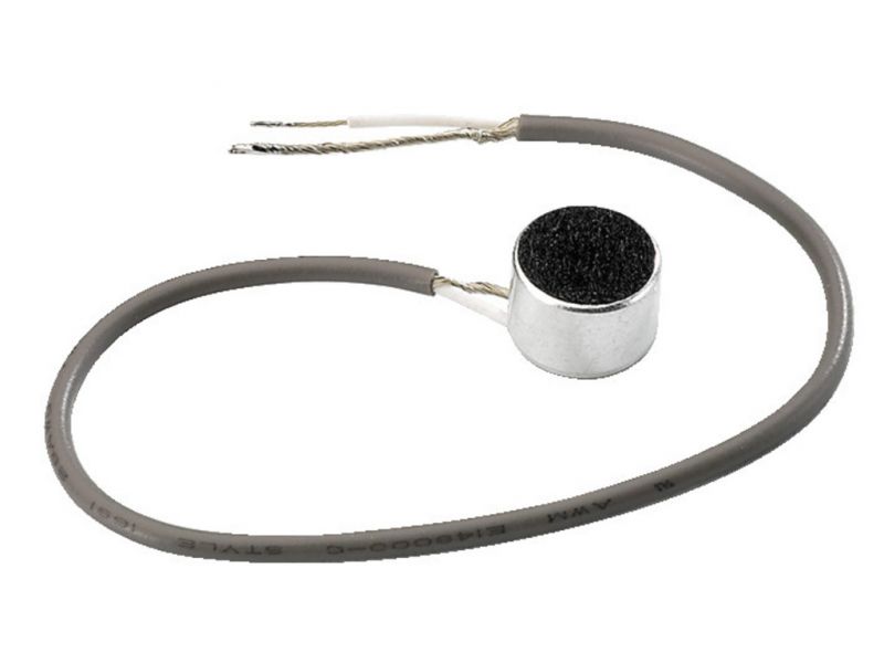 High-quality electret microphone cartridge, (omnidirectional polar pattern), with 150 mm shielded cable and insulated, tin-plated cable ends. An external 1-2.2 kΩ resistor is required for AF decoupling. Manufacturer information: MONACOR INT...