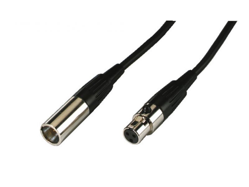 Mini XLR cable Plug and inline jack with cable bending protectionGold-plated contacts, 3 polesLength: 5 m Manufacturer information: MONACOR INTERNATIONAL GmbH & Co. KGKonsul-Smidt-Str. 6828217 BremenGermanyinfo@monacor.com