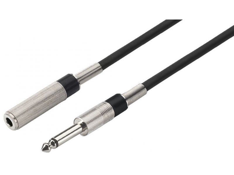 Mono extension cable Fitted with 6.3 mm plug and 6.3 mm inline jack 1 core with shielding Low-noise cable material, Ø 6.8 mm Length: 6 m Manufacturer information: MONACOR INTERNATIONAL GmbH & Co. KGKonsul-Smidt-Str. 6828217 BremenGermanyinfo@mo...