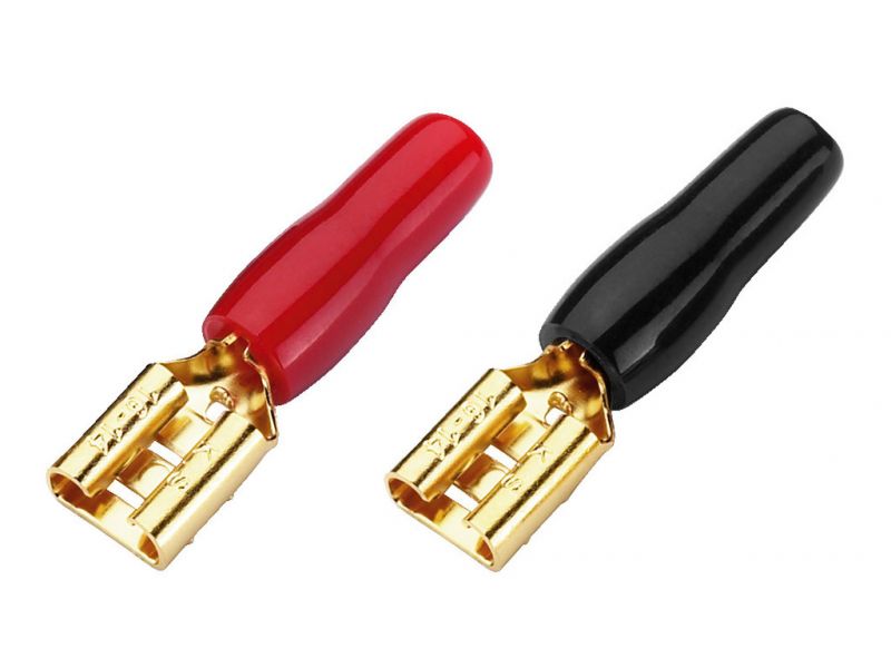 Push-on terminals Gold-plated Pack of 20 Contact width: 6.3 mm Manufacturer information: MONACOR INTERNATIONAL GmbH & Co. KGKonsul-Smidt-Str. 6828217 BremenGermanyinfo@monacor.com