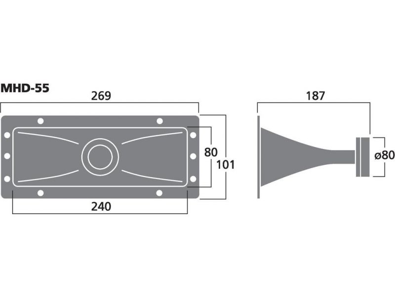 PA horn tweeter, 30 W, 8 Ω Plastic version Good efficiency Wide bandwidth, suitable for general PA applications Replacement voice coils are available at option (MHD-1255/VC) Manufacturer information: MONACOR INTERNATIONAL GmbH & Co. KGKonsul-Sm...