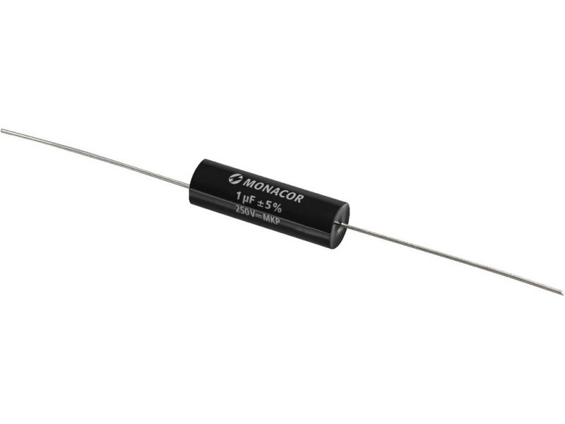 MKP film capacitor, 1.0 µF, 250 V Top-quality capacitor for high-end crossover networks Metal-coated polypropylene film Extra low loss factor Resistant to aging Axial design Manufacturer information: MONACOR INTERNATIONAL GmbH & Co. KGKonsul-Sm...