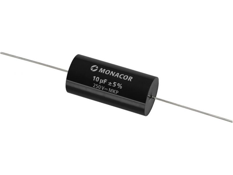 MKP film capacitor, 10 µF, 250 V Top-quality capacitor for high-end crossover networks Metal-coated polypropylene film Extra low loss factor Resistant to aging Axial design Manufacturer information: MONACOR INTERNATIONAL GmbH & Co. KGKonsul-Smi...