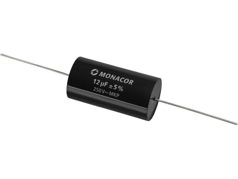 MKP film capacitor, 12 µF, 250 V Top-quality capacitor for high-end crossover networks Metal-coated polypropylene film Extra low loss factor Resistant to aging Axial design Manufacturer information: MONACOR INTERNATIONAL GmbH & Co. KGKonsul-Smi...