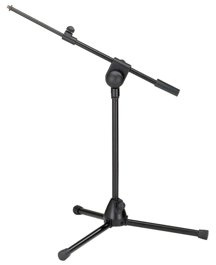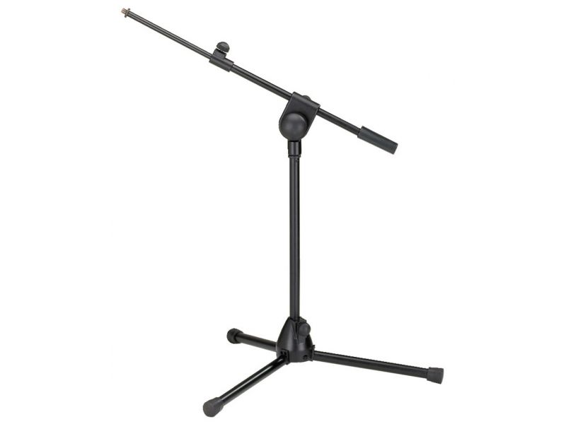 Microphone floor stand, with movable boom of adjustable length and shock-absorbing folding feet. Thread: 9 mm (⅜"). Mat black lacquered Adjustable boom length: 41-60 cm Height: 56 cm Storage dimensions: 10 x 56 cm Weight: 1.8 kg Manufacturer in...
