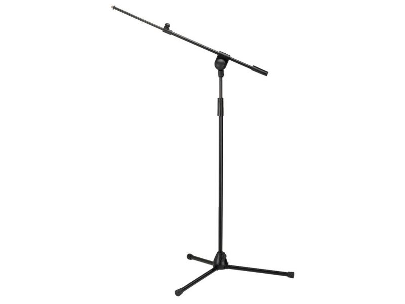 Microphone floor stand, with movable boom of adjustable length and shock-absorbing folding feet. Thread: 16 mm (⅝") and 9 mm (⅜"). Mat black lacquered Adjustable boom length: 56-95 cm Adjustable height: 106-242 cm Storage dimensions: 10 x 98 cm Wei...