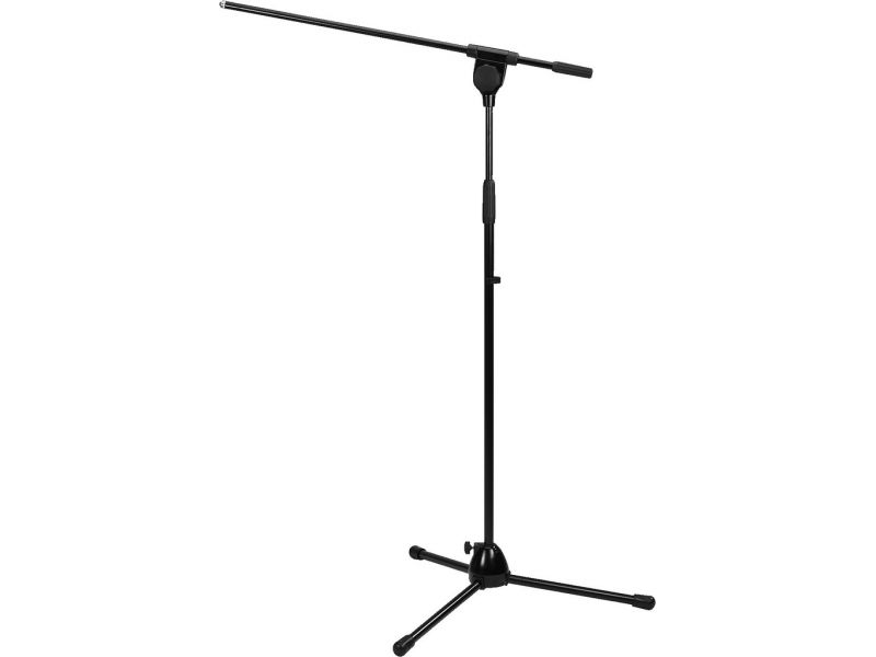 Microphone floor stand, high-quality version. With movable boom and shock-absorbing folding feet. Thread: 9 mm (⅜"). Mat black lacquered Boom length: 74 cm Adjustable height: 105-213 cm Storage dimensions: 11 x 98 cm Weight: 2.58 kg Manufacture...