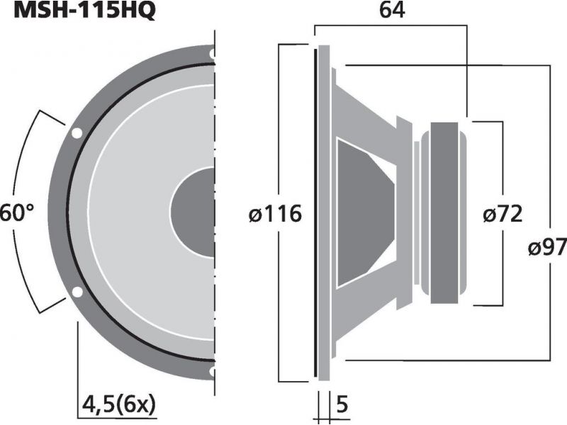 High-quality hi-fi midrange speaker, 50 W, 8 Ω 100 mm (4") midrange speaker Further development of the classic speaker MSH-115 Specialised for reproduction of the important midrange Diecast basket and rear-ventilated centering spider for minimum mech...