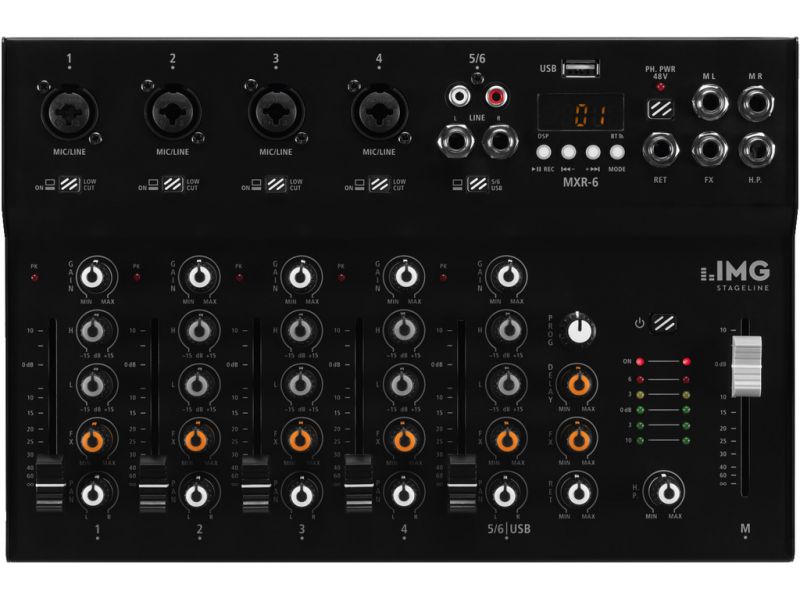 6-channel audio mixer, with DSP effect unit, integrated MP3 player and Bluetooth receiver. Integrated USB audio interface (will be identified and addressed as an external sound card) Full-duplex USB port (allows for simultaneous recording and repro...