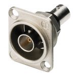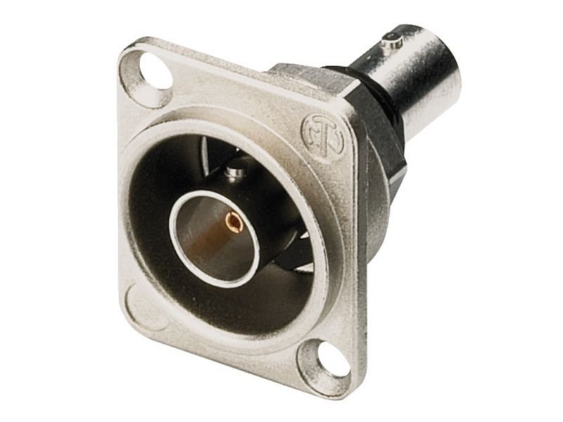 BNC feed-through panel jack, 75 Ω High-quality PTFE insulation Gold-plated contacts Insulated body D series