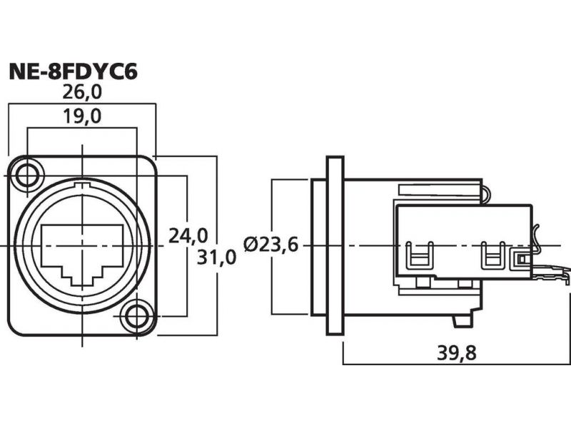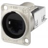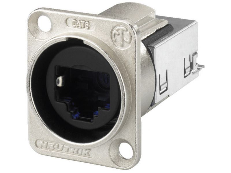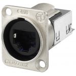 EtherCon panel jack, nickel-plated, for industrial use and Ethernet cabling on stage. Complies with Cat. 6 requirements according to TIA/EIA 568B and ISO/IEC, data rate up to 10 Gbps Weatherproof RJ45 jack with tool-free and gas-tight insulation di...