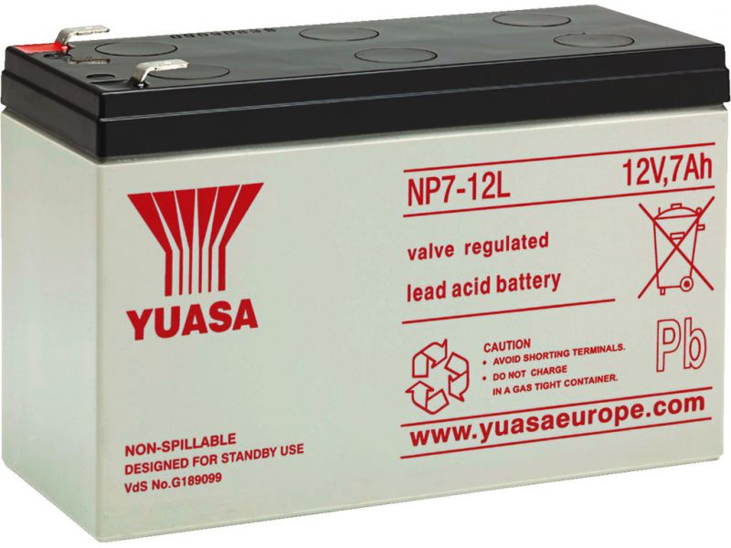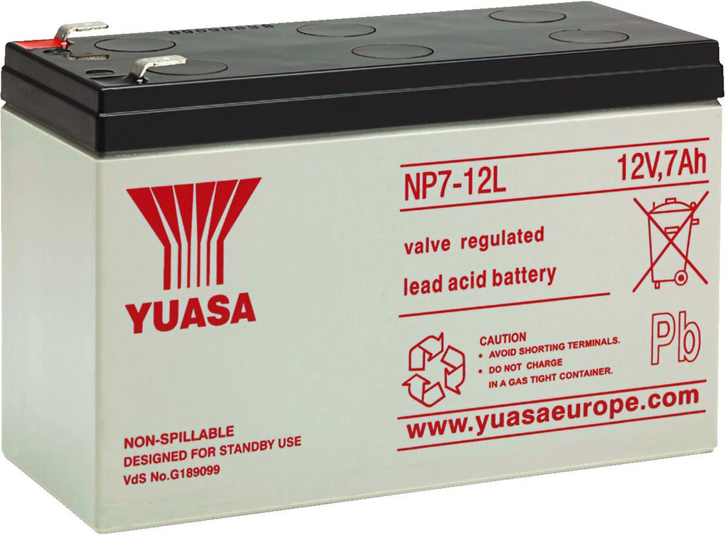 Rechargeable lead battery, 12 V, 7.0 Ah by YUASA. Maintenance-free Especially high capacity For general use Discharging or storing in any position For standby parallel operation (SBPO) and cycle operation (CO) Manufacturer information: GS Yua...