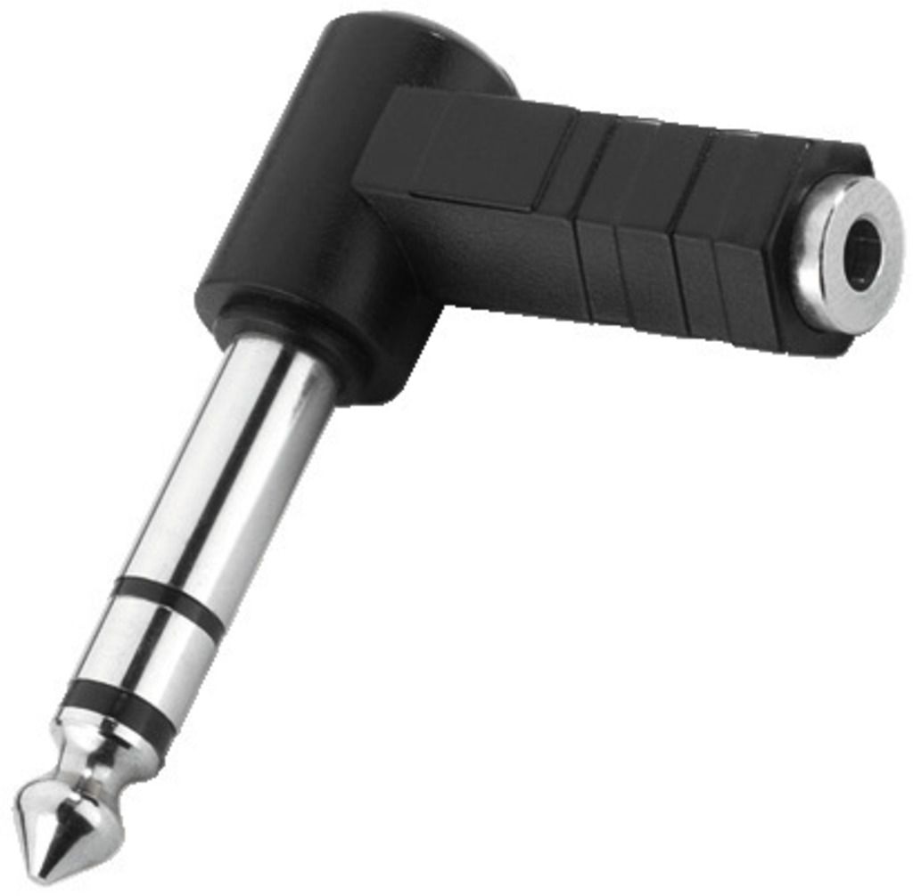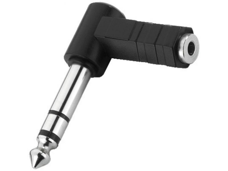 Adapter, right-angle 6.3 mm stereo plug to 3.5 mm stereo jack. Manufacturer information: MONACOR INTERNATIONAL GmbH & Co. KGKonsul-Smidt-Str. 6828217 BremenGermanyinfo@monacor.com