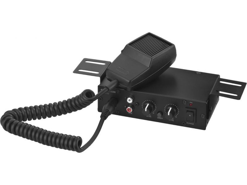 Mono PA mixing amplifier, 8.5 W 1 adjustable microphone input 1 adjustable line input Supplied with hand-held push-to-talk microphone Siren function via push-button Metal housing Supplied with mounting brackets 12 V battery operation Manufacturer...