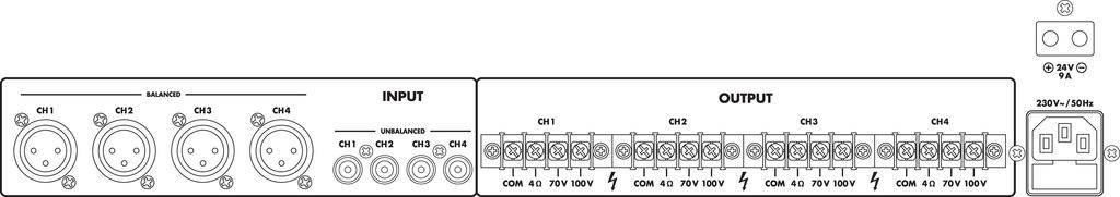 | Output impedance | 4 Ω, 70/100 V |