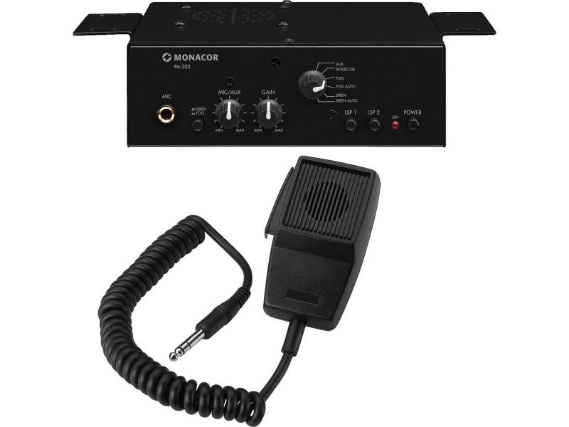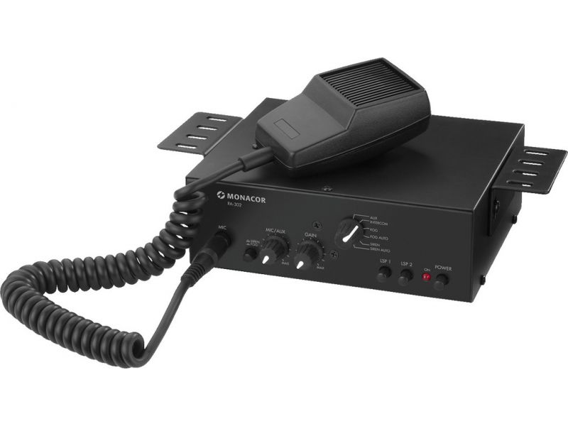 Mono PA mixing amplifier, 14 W. 1 microphone input and 1 line input, adjustable 2 speaker outputs, switchable Built-in speaker Can also be operated as an intercom system Supplied with hand-held push-to-talk microphone Siren and fog horn, automatic...
