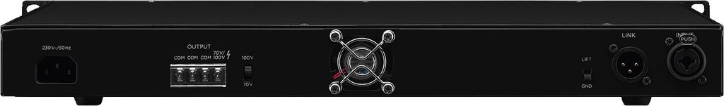 Mono PA power amplifier 1 x 120 W Temperature-controlled fan, continuously adjustable Protected against overheating, overload and short circuit LED indication for clip, protect, overtemperature, output level and 100 V/70 V Feed-through output (link)...