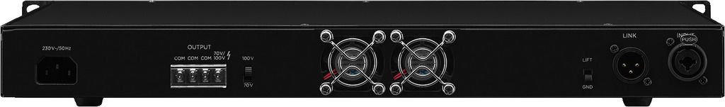 Mono PA power amplifier 1 x 240 W Temperature-controlled fan, continuously adjustable Protected against overheating, overload and short circuit LED indication for clip, protect, overtemperature, output level and 100 V/70 V Feed-through output (link)...