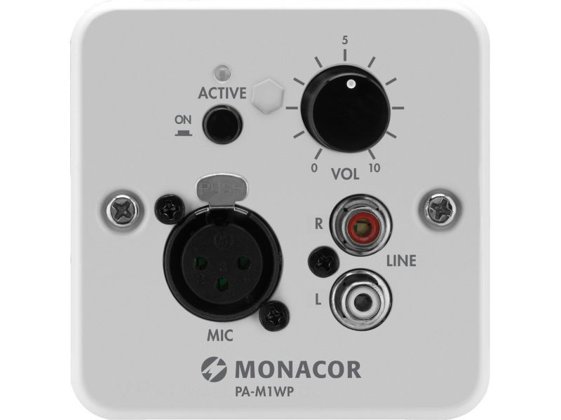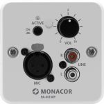 Wall module, for local insertion of audio signals to PA matrix mixing amplifier PA-M224 or PA-M412. Intended application: volume control of 1 zone, local insertion of audio signals 2 x RCA jack for line signals Microphone connection via 3-pole XLR...