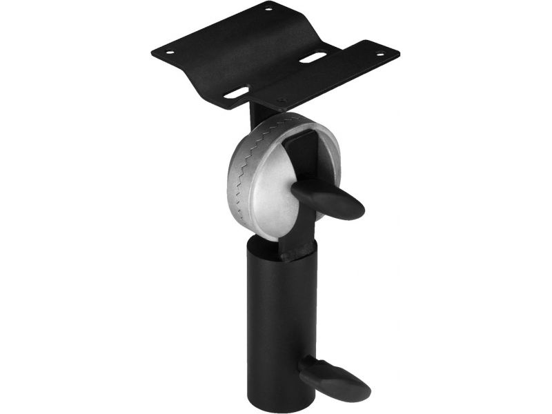 Push-on tilting adapter with mounting plate Adjustable tilting angle, to be secured with locking screw Black lacquered steel version Mounting plate (90 x 105 mm) with 4 mounting holes and 2 elongated holes for accepting speaker systems Suitable for s...