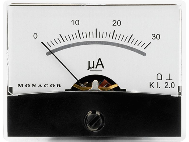 Moving coil panel meter With mirror scale All-plastic housing Quality class 2 Zero point correction Prewired for illumination Measuring range: 0.03 mA For illumination purposes, these panel meters can subsequently be fitted with two LEDs with ser...