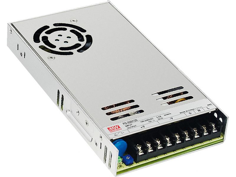 12 V built-in power supply Output current: 26.7 A (320 W) Protected against short circuit, overload and overvoltage Fine adjustment of output voltage Aluminium housing Mains connection and low-voltage connection via screw terminals Manufacturer i...
