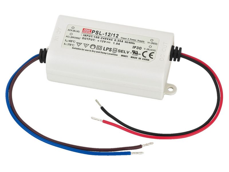 LED switch-mode power supply, DC 12 V, for indoors. Especially for LED installations 12 W Low-noise according to EMC standard EN 61000-3-2 class A Protected against short circuit, overload and overvoltage Connection via bare cable ends Plastic hou...