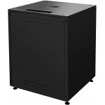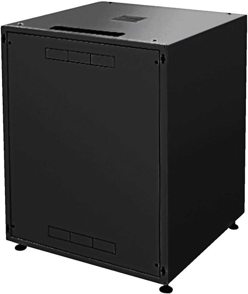 Professional studio racks for 482 mm (19") devices Front door with safety glass Sheet steel cabinet body and removable rear panel Black powder coating (RAL 9005) 4 levelling feet Earthing cable for rear panel Brush strip for cable inlet RACK-18GD/S...