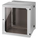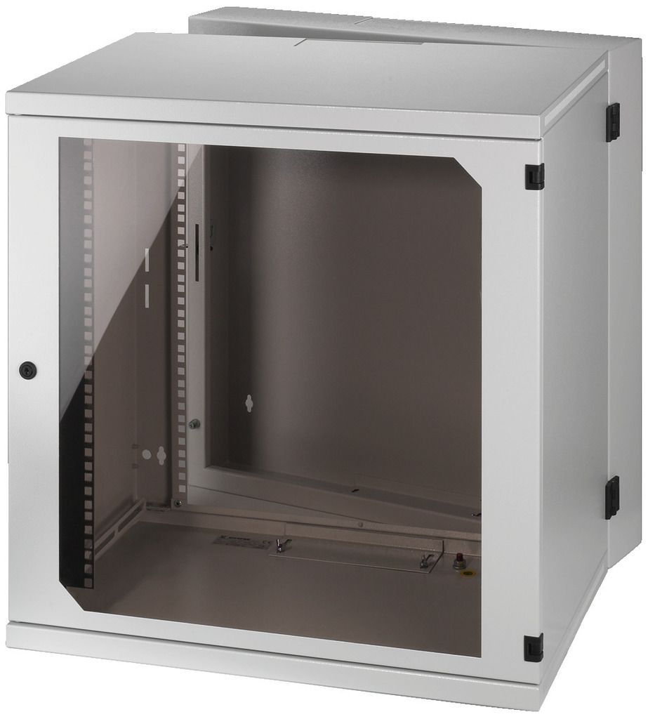 Wall-mounted housing, 12 RS, for 482 mm (19") devices. Movable middle part of the housing Sheet steel version Light grey powder coating (RAL 7035) Lockable front door with safety glass Door can be opened either to the left or to the right Side wa...
