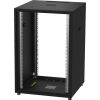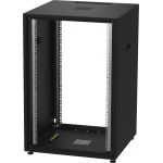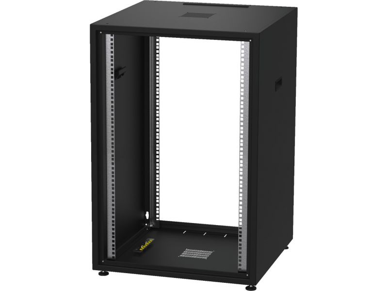 Professional studio rack, 18 RU, for 482 mm (19") devices. Sheet steel cabinet body Black powder coating (RAL 9005) 4 levelling feet and 1 set of castorsBrush strip for cable inlet Manufacturer information: MONACOR INTERNATIONAL GmbH & Co. KG...