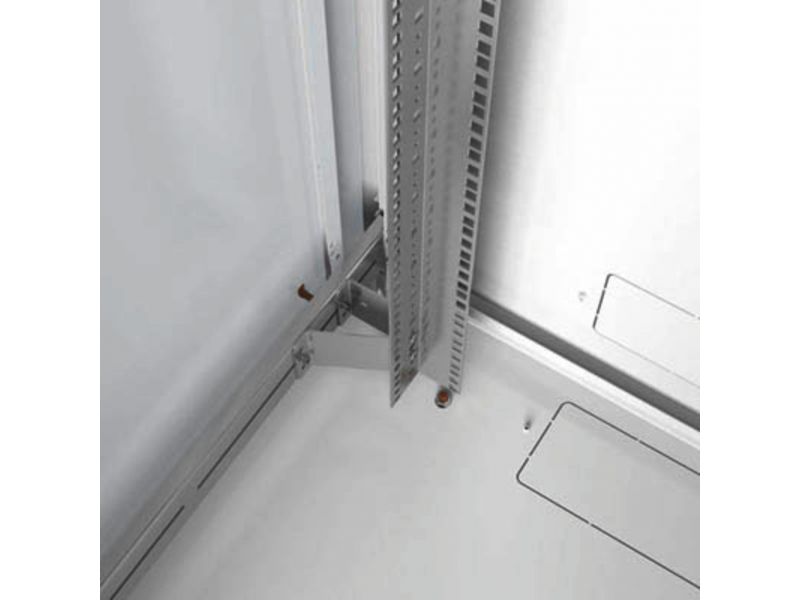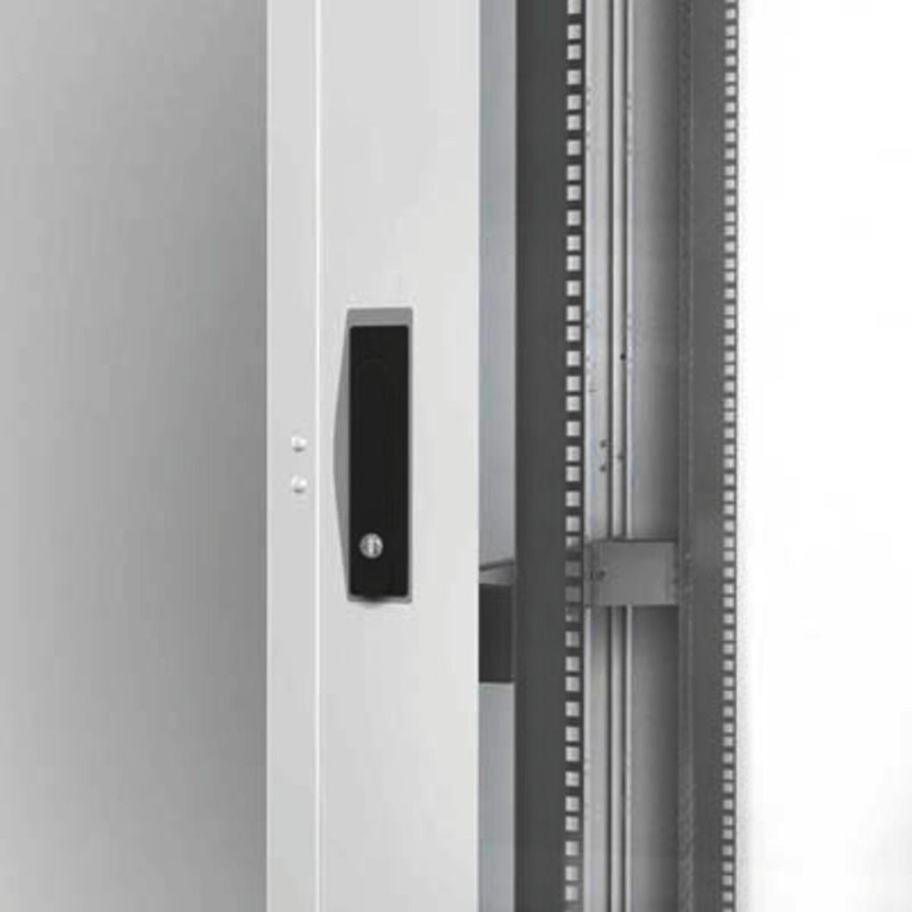 Equipment rack, 42 RU, for 482 mm (19") devices. Sheet steel version Light grey powder coating (RAL 7035) Front door with safety glass and swivel handle lock Hinges can easily be changed for door to be opened to the left or to the right Side walls...