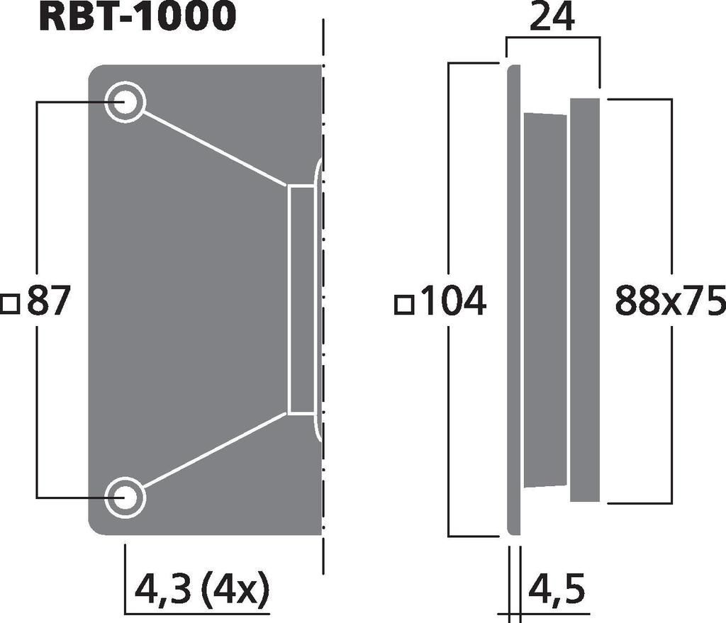 Ribbon tweeter for PA and hi-fi, 40 W, 6 Ω Magnetostatic speaker with waveguide Tweeter system from the L-RAY/1000 Fine and brilliant reproduction of the high frequencies For use from 3,000 Hz (hi-fi) or 4,000 Hz (PA) on via 12 dB filter Diecast alum...