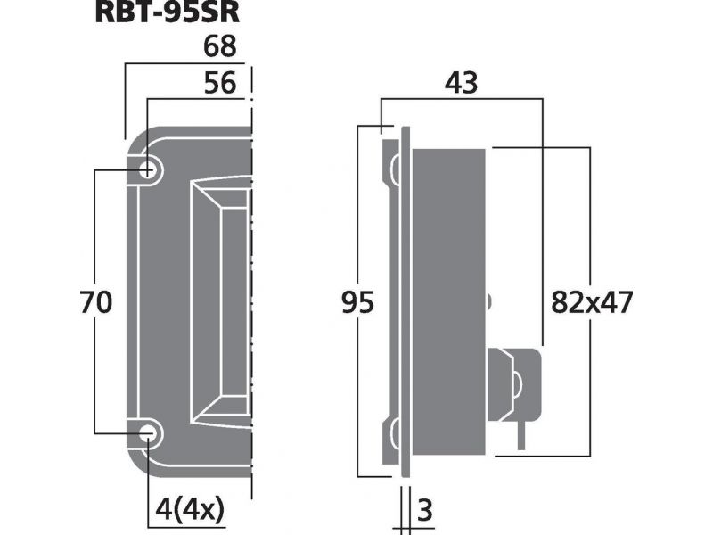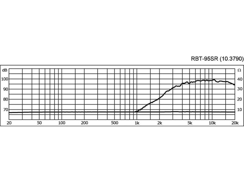 Ribbon tweeter, 40 W, 8 Ω Magnetostatic speaker with horn front attachment Compared with RBT-95 and RBT-95SQ, increased power capability Neodymium magnet system Fine and brilliant reproduction of the high frequencies, high efficiency Ideally suited f...