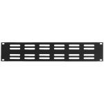Rack panel, 2 RS, with ventilation slots. 483 x 89 mm Manufacturer information: MONACOR INTERNATIONAL GmbH & Co. KGKonsul-Smidt-Str. 6828217 BremenGermanyinfo@monacor.com
