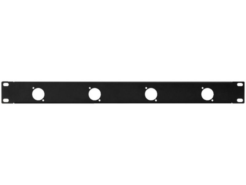 Rack panel, 1 RS Punched holes: 4 x D series, e.g. NC-3MDL1, NC-3FDL1, NL-2MP, NL-4MP Dimensions: 482 x 44.5 mm Due to different hole spacing with panel connectors of the D and P series from NEUTRIK, manual modification of the rack panels was...
