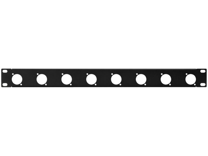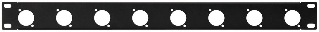 Rack panel, 1 RS Punched holes: 8 x D series, e.g. NC-3MDL1, NC-3FDL1, NL-2MP, NL-4MP Dimensions: 482 x 44.5 mm Due to different hole spacing with panel connectors of the D and P series from NEUTRIK, manual modification of the rack panels was...