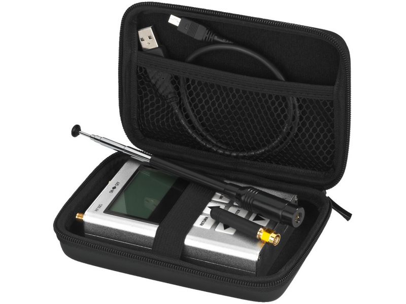 in a compact aluminium housing with two antennas (SMA connection) for the different frequency ranges. Also to be used for preventing frequency collisions when setting up radio links in the specified frequency range.