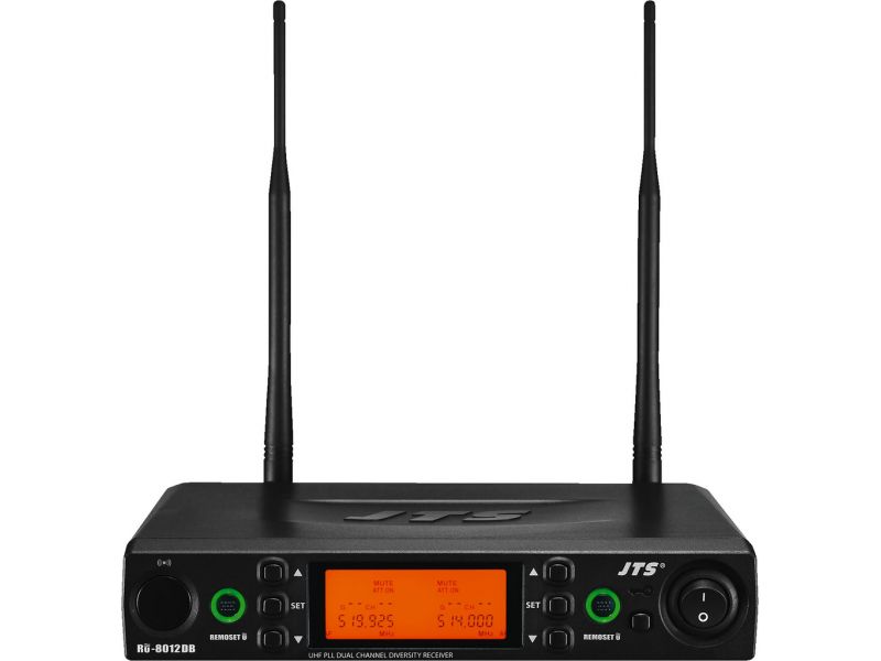 - Backlit display with status indications, e.g. group/channel, frequency, battery, antenna A/B, RF receiving level, AF audio level