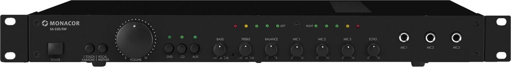 Universal stereo mixing amplifier, 50 W Sing along! The clearly arranged user surface of the SA-230/SW makes listening to music and especially making music really enjoyable. One of the three stereo line sources at a time and three mono microphone sou...