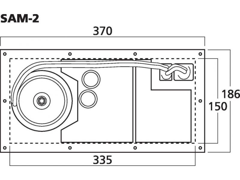 The high-quality active high-pass filter of the SAM-2 with versatile adjustments can conveniently be used as a bass relief of the main speakers and for optimising the sound. However, a regulated preamplifier output (Pre Out) is required for this. This kind of output is partly present at high-quality separable full amplifiers (Pre Out/Main In) or automatically provided by preamplifier/power amplifier combinations or when using mixers.