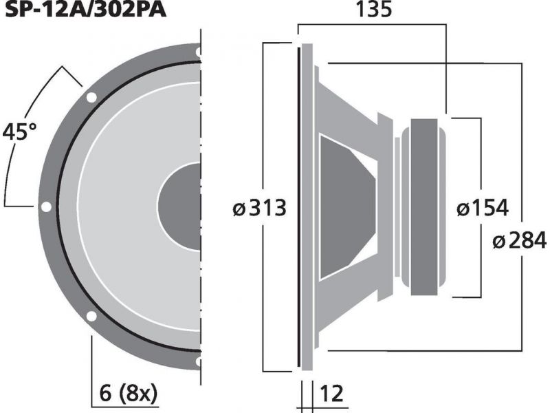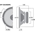 PA bass-midrange speaker, 300 W, 8 Ω Of very high power capability 30 cm (12") professional speaker of long excursion Diecast basket Cone with water-repellent coating Very neat workmanship with front-facing basket Wide frequency response of low disto...