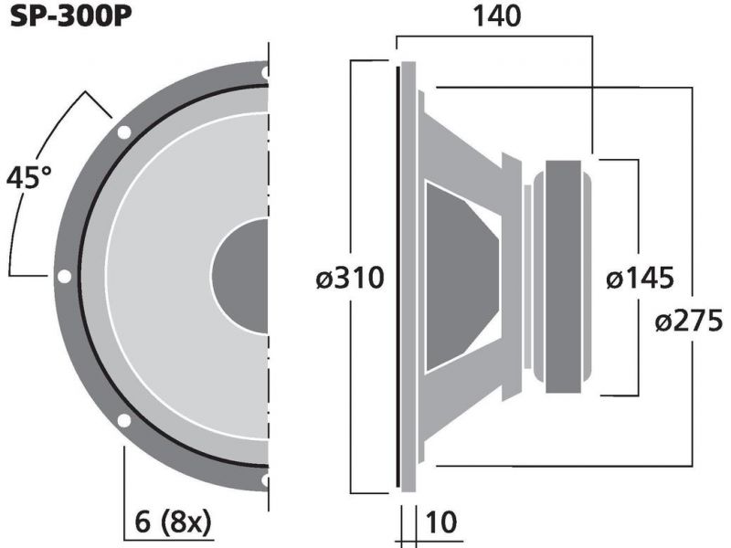 Bass speaker, 100 W, 8 Ω With drilled pole core Robust paper cone for bass reproduction of high power rating Manufacturer information: MONACOR INTERNATIONAL GmbH & Co. KGKonsul-Smidt-Str. 6828217 BremenGermanyinfo@monacor.com