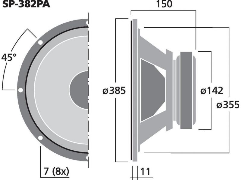Universal bass speaker, 150 W, 8 Ω For bass applications, also in power speaker systems. Manufacturer information: MONACOR INTERNATIONAL GmbH & Co. KGKonsul-Smidt-Str. 6828217 BremenGermanyinfo@monacor.com