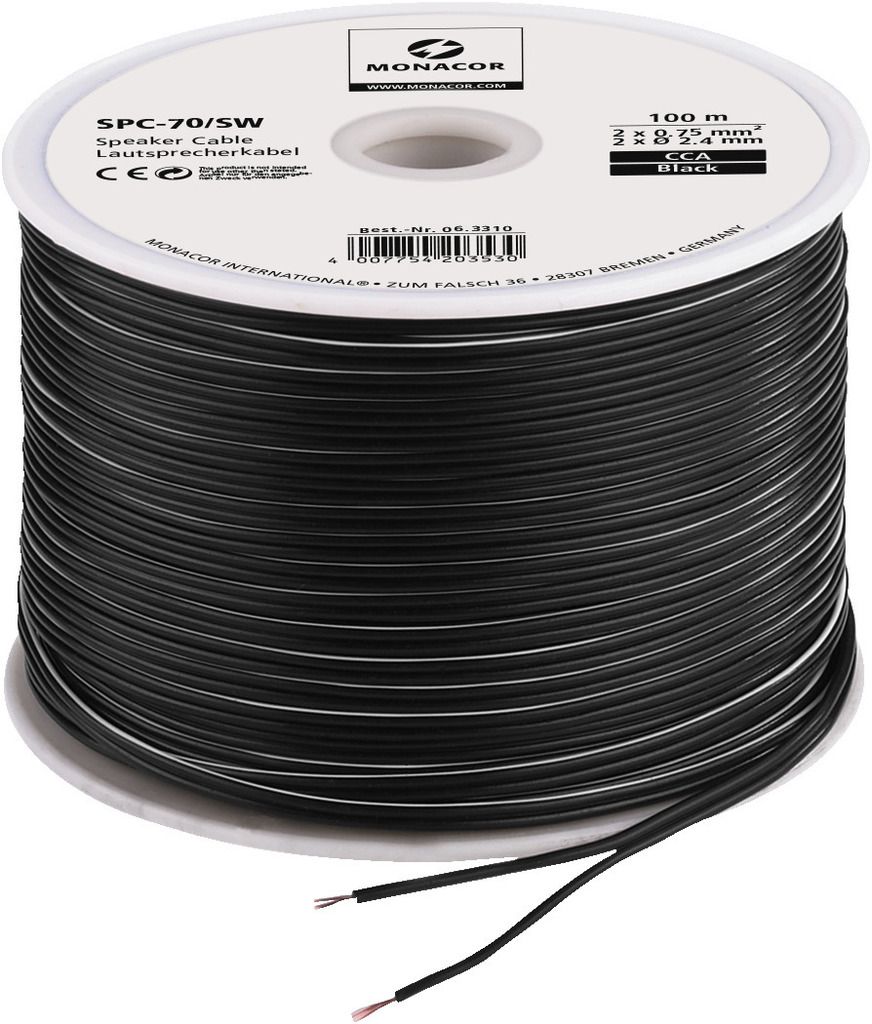 Speaker cable “ECONOMY QUALITY” 100 m reel Copper-clad aluminium conductor Core coding Manufacturer information: MONACOR INTERNATIONAL GmbH & Co. KGKonsul-Smidt-Str. 6828217 BremenGermanyinfo@monacor.com